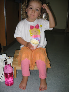 My mother took care of Emilia for much of the time we were in the hospital (thank you, mom!) and doted on her endlessly. This is the "big sister" outfit they bought together, which Emilia wore for three days straight. Her favorite part is the "wiggly skirt."
